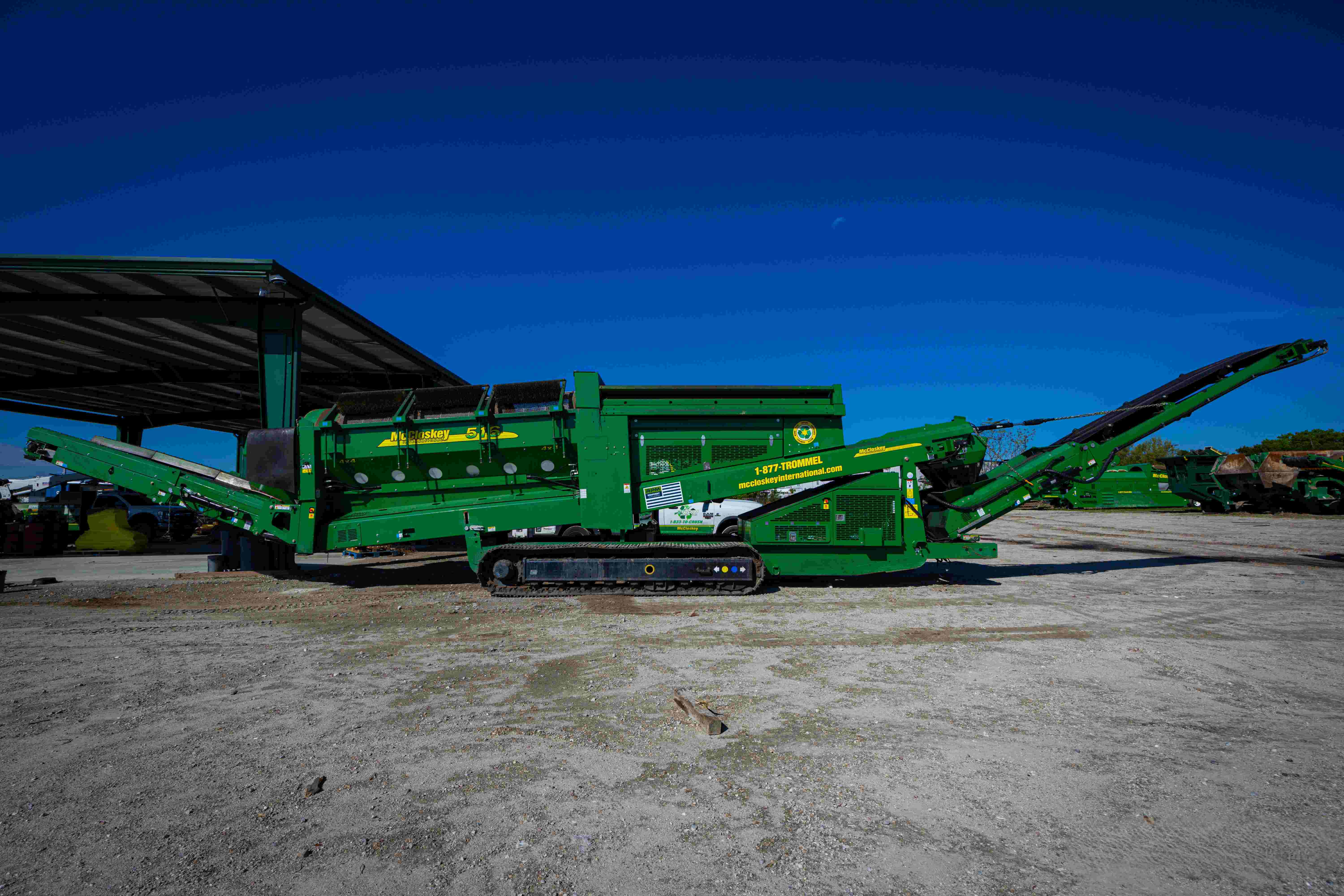 * ENGINE: CAT C2.8 74HP * 5'x16" HEAVY DUTY TROMMEL DRUM * TRACKED MOBILITY * INTERGATED HYDRAULIC FOLDING STOCKPILING CONVEYORS * REMOTECONTROL RADIAL CONVEYOR * 32" WIDE BELT